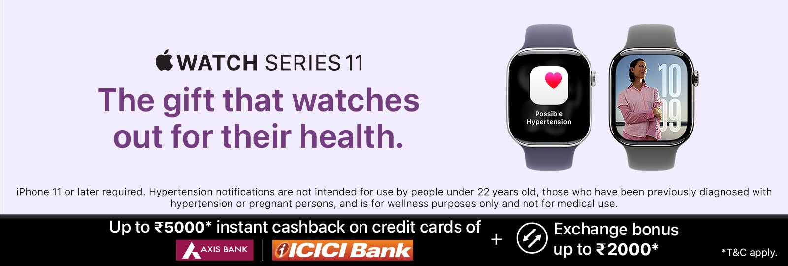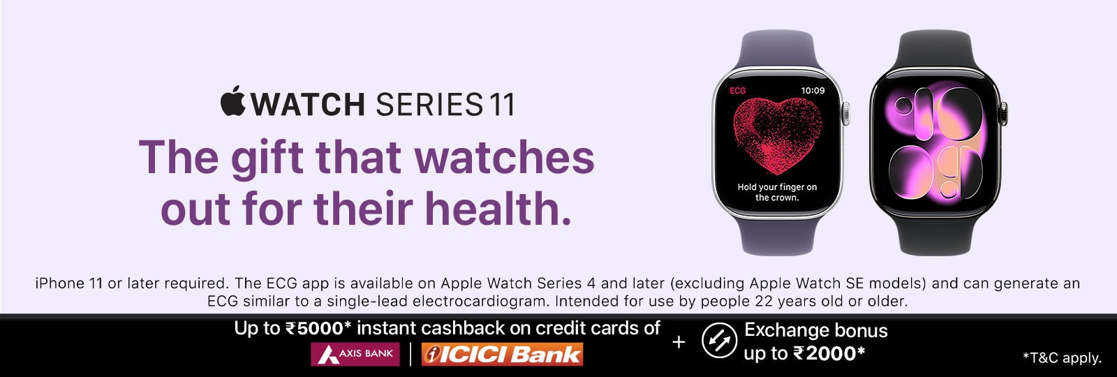 Apple Watch Series 11 GPS + Cellular 46mm Jet Black Aluminium Case, Black / Space Grey, Black / Rose Gold, Light Blush / Silver, Purple Fog with Sport Band - S/M & M/L