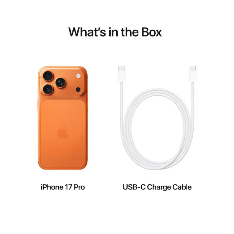 The iPhone 17 Pro sets a new standard with the A19 Pro chip, brilliant 6.3" Super Retina XDR 120Hz display, and a powerful 48MP triple camera with 5x zoom. With 256GB storage, titanium build, and all-day battery with 35W fast charging, it’s the ultimate Pro experience in Cosmic Orange, Deep Blue, and Silver.
